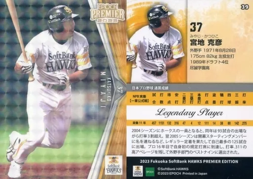 Sports / Regular Card / Legendary Player/2023 Fukuoka Soft Bank Hawks PREMIER EDITION 39 [Regular Card] : Katsuhiko Miyaji (Hologram Version)