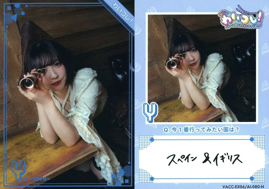 Japanese title: コレクションカード(女性)/Voice Actor Card Collection EX VOL.06 チームY「わいコレ!~チームYがトレカになってみた~」 VACC-EX06/AI-080-N[ノーマル]:愛美/Yo-soro-/Voice Actor Card Collection EX VOL.06 チームY「わいコレ!~チームYがトレカになってみた~」