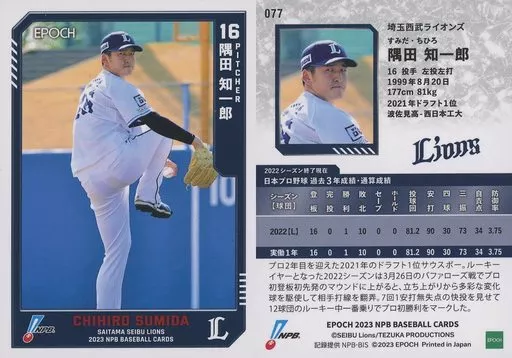 Japanese title: スポーツ/レギュラーカード/EPOCH 2023 NPBプロ野球カード 077[レギュラーカード]:隅田知一郎