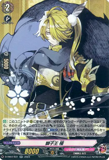 Japanese title: ヴァンガード/RR/刀剣乱舞/overDress タイトルブースター第7弾「刀剣乱舞ONLINE 2023」 D-TB07/031[RR]:獅子王 極