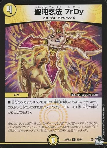 Japanese title: デュエルマスターズ/C/光/[DM23-RP2]アビス・レボリューション 第2弾「忍邪乱武」 55/74[C]:聖沌忍法 7r0y