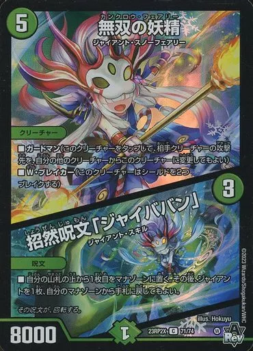 Japanese title: デュエルマスターズ/C/自然/[DM23-RP2X]アビス・レボリューション 第2弾「忍者乱武」超刺激パック 71/74[C]:無双の妖精/招然呪文「ジャイババン」(ホイル仕様)
