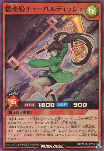 Japanese title: 遊戯王ラッシュデュエル/SR/効果モンスター/トリプルビルドパック ゴッドブレス・ウィング RD/TB01-JP025[SR]:振楽姫チューバルディッシュ