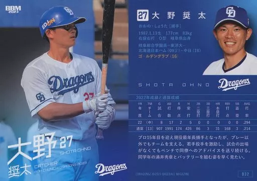 Japanese title: BBM/レギュラーカード/BBM2023 中日ドラゴンズ D32[レギュラーカード]:大野奨太