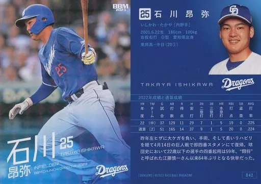 Japanese title: BBM/レギュラーカード/BBM2023 中日ドラゴンズ D42[レギュラーカード]:石川昂弥(キラカード版)