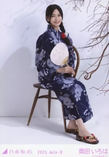 Japanese title: 生写真(乃木坂46)/アイドル/乃木坂46 奥田いろは/全身・座り・浴衣/レアVer./「乃木坂46 2023.July-II」会場限定ランダム生写真