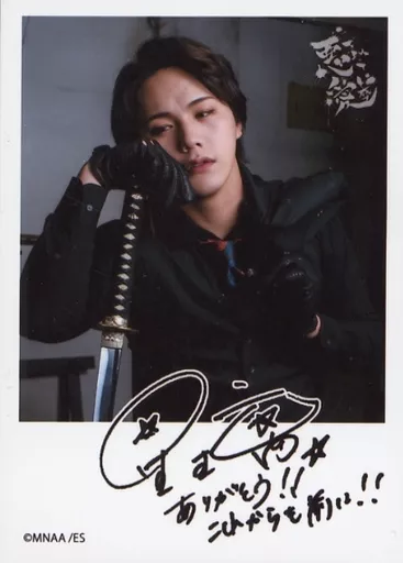 Japanese title: 生写真(男性)/俳優 星璃(仁)/印刷サイン、メッセージ入り・トレカサイズ/eeo Stage action 劇団MNOP#2「悪を以って愛と成す」ポラロイド風ブロマイド