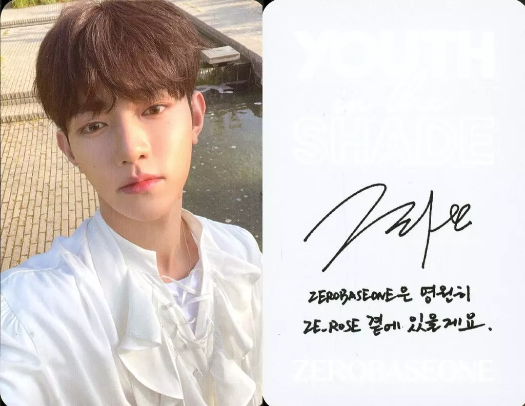 Collection card (male) / CD "YOUTH IN THE SHADE" (SHADE Ver.) selfie photo card "YOUTH IN THE SHADE" (SHADE Ver.) selfie photo card in ZEROBASEONE / Zhang Hao / grey on the reverse side with print sign and message / CD-TV