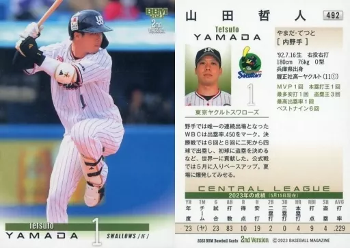 Japanese title: BBM/レギュラーカード/BBM2023 ベースボールカード 2ndバージョン 492[レギュラーカード]:山田哲人