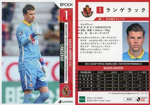 Japanese title: スポーツ/レギュラーカード/EPOCH 2023 Jリーグオフィシャルトレーディングカード チームエディション・メモラビリア 名古屋グランパス NG02[レギュラーカード]:ランゲラック(ホログラム版)