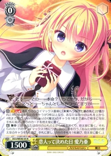 Japanese title: ヴァイスシュヴァルツ/N/キャラ/プレミアムブースター D.C.~ダ・カーポ~ 20th Anniversary DC5/WE40-05[N]:恋人って決めた日 愛乃亜