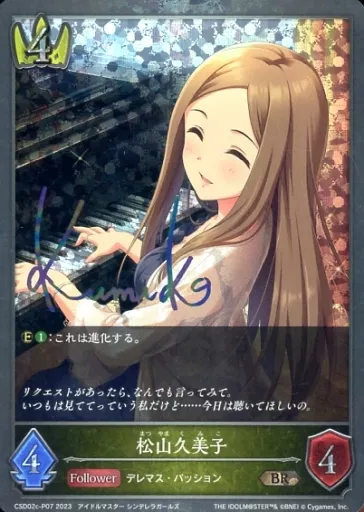 Japanese title: シャドウバース エボルヴ/BR/フォロワー/コラボスターターデッキ プラチナパック Ver.Passion CSD02c-P07[BR]:(プレミアム)松山久美子(キャラクター虹箔押しサイン入り)
