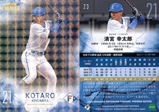 Sports / Regular Card / EPOCH 2023 Hokkaido Nippon-Ham Fighters PREMIER EDITION BASEBALL CARD 23 [Regular Card] : Kotaro Kiyomiya (hologram version)