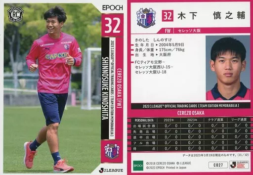 Japanese title: スポーツ/レギュラーカード/EPOCH 2023 Jリーグオフィシャルトレーディングカード チームエディション・メモラビリア セレッソ大阪 CO27[レギュラーカード]:木下慎之輔