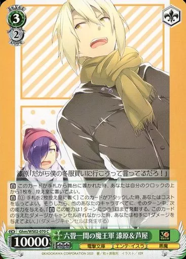 Japanese title: ヴァイスシュヴァルツ/C/キャラ/ブースターパック 電撃文庫 Ghm/WS02-070[C]:六畳一間の魔王軍 漆原&芦屋