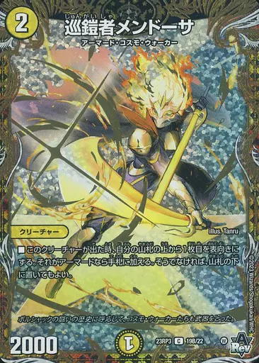 Japanese title: デュエルマスターズ/C/光/[DM23-RP3]アビス・レボリューション 第3弾「魔覇革命」 19B/22[C]:巡鎧者メンドーサ