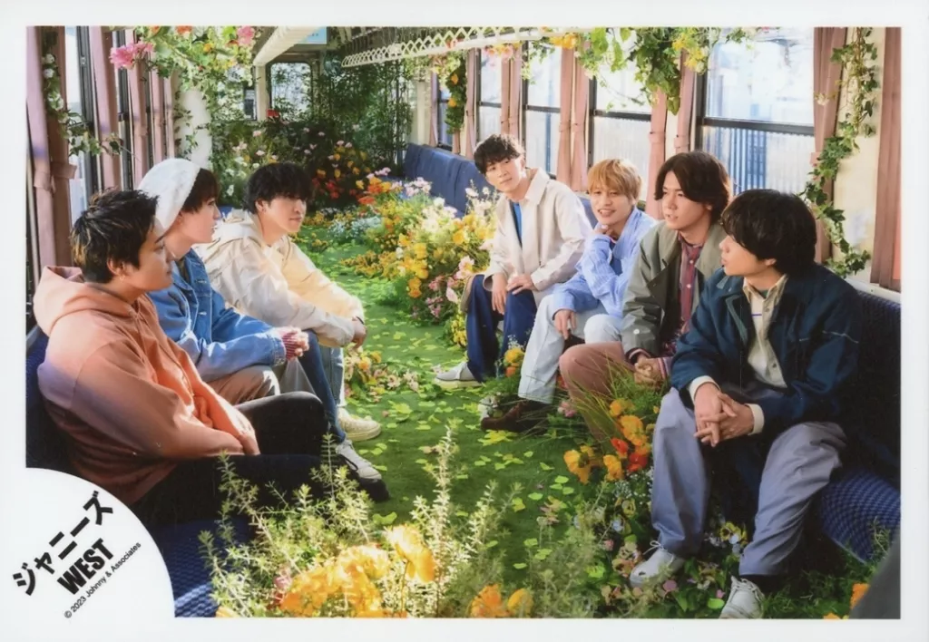 Japanese title: 生写真(ジャニーズ)/アイドル/ジャニーズWEST ジャニーズWEST/集合(7人)/横型・全身/シングル「しあわせの花」MV&ジャケ写オフショット/公式生写真