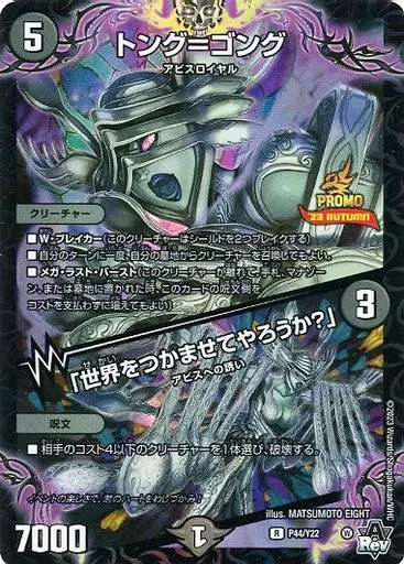 Japanese title: デュエルマスターズ/R/闇/スペシャルプロモパック2023 Vol.3 P44/Y22[R]:トング=ゴング/「世界をつかませてやろうか?」