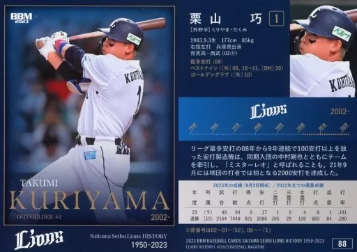 Japanese title: BBM/レギュラーカード/現役選手/BBM2023 埼玉西武ライオンズヒストリー1950-2023 88[レギュラーカード]:栗山巧