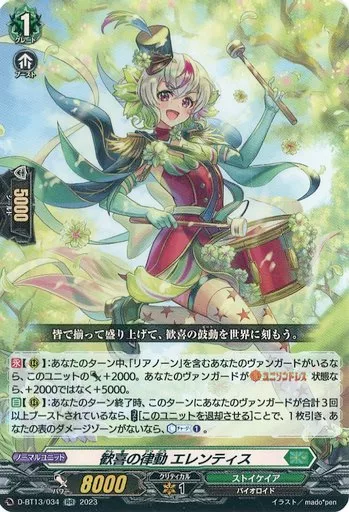 Japanese title: ヴァンガード/RR/ストイケイア/overDress ブースターパック第13弾 「天輪飛翔」 D-BT13/034[RR]:歓喜の律動 エレンティス