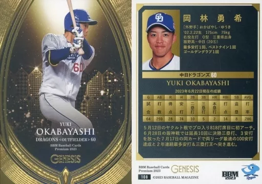 Japanese title: BBM/レギュラーカード/BBM2023 ジェネシス 108[レギュラーカード]:岡林勇希