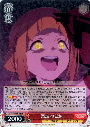 Japanese title: ヴァイスシュヴァルツ/R/キャラ/ブースターパック アリス・ギア・アイギス Expansion AGS/W108-038[R]:暴走 のどか