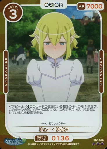 Japanese title: OSICA(オシカ)/RP/キャラクター/ダンジョンに出会いを求めるのは間違っているだろうかIV part2 ブースターパック 02-136[RP]:(ホロ)リュー・リオン