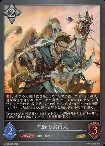 Japanese title: シャドウバース エボルヴ/GR/フォロワー/ブースターパック第7弾「森羅鋼鉄」 BP07-107[GR]:荒野の案内人