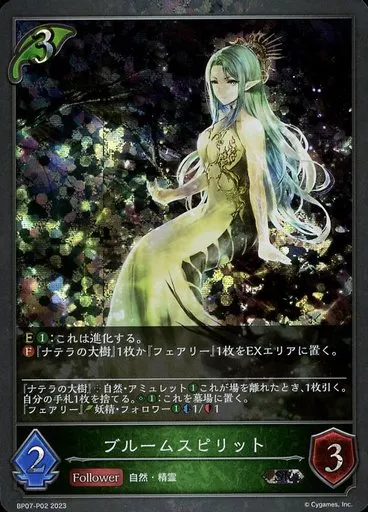 Japanese title: シャドウバース エボルヴ/SR/フォロワー/ブースターパック第7弾「森羅鋼鉄」 BP07-P02[SR]:(プレミアム)ブルームスピリット