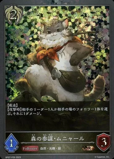 Japanese title: シャドウバース エボルヴ/BR/フォロワー/ブースターパック第7弾「森羅鋼鉄」 BP07-P29[BR]:(プレミアム)森の参謀・ムニャール