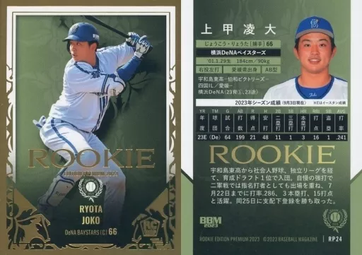 Japanese title: BBM/レギュラーカード/BBMベースボールカードセット ルーキーエディションプレミアム2023 RP24[レギュラーカード]:上甲凌大