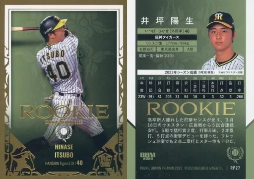 Japanese title: BBM/レギュラーカード/BBMベースボールカードセット ルーキーエディションプレミアム2023 RP27[レギュラーカード]:井坪陽生