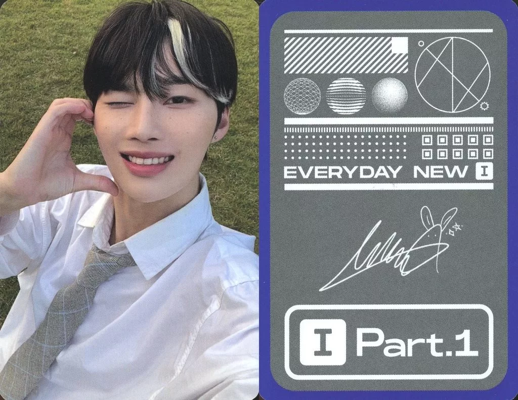 "2nd Mini Album I (Part 1)" photo card for NINE. I / MINJUN (Minjung) / Gray back / Printed with signature / CDs