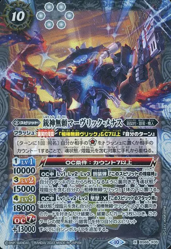 Japanese title: バトルスピリッツ/X/スピリット/契約編:界 第3章 紡約 BS66-X05[X]:銃神無頼マーヴリック・メナス