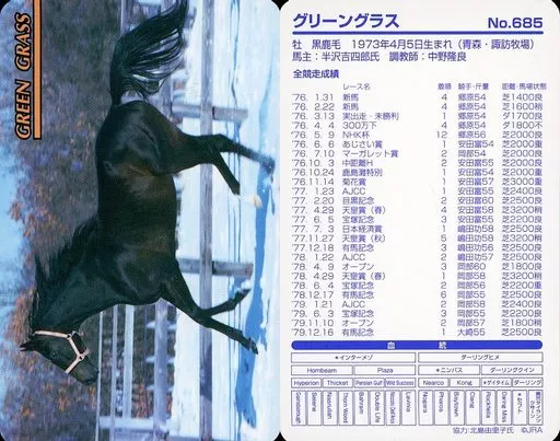Japanese title: スポーツ/レギュラーカード/まねき馬カード 第14弾 馬手箱W Part.1 No.685[レギュラーカード]:グリーングラス
