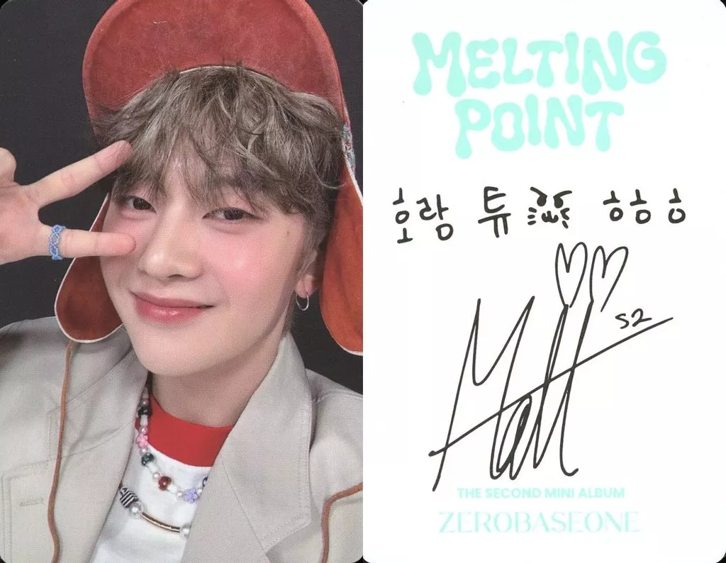 Collection card (male) / CD "MELTING POINT" (Mystery Ver.) enclosed photo card ZEROBASEONE / Matthew Seok / Back With Print Signature and Message / Photo Card with "MELTING POINT" (Mystery Ver.)
