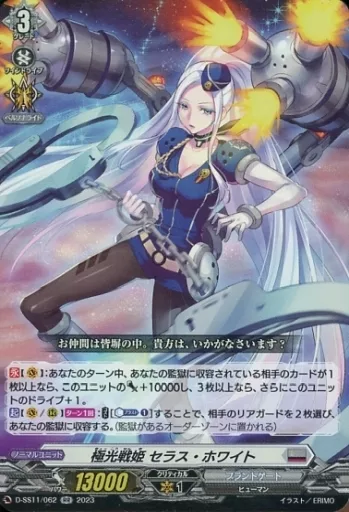 Japanese title: ヴァンガード/RR/ブラントゲート/overDress スペシャルシリーズ第11弾 「トリプルドライブブースター」 D-SS11/062[RR]:極光戦姫 セラス・ホワイト