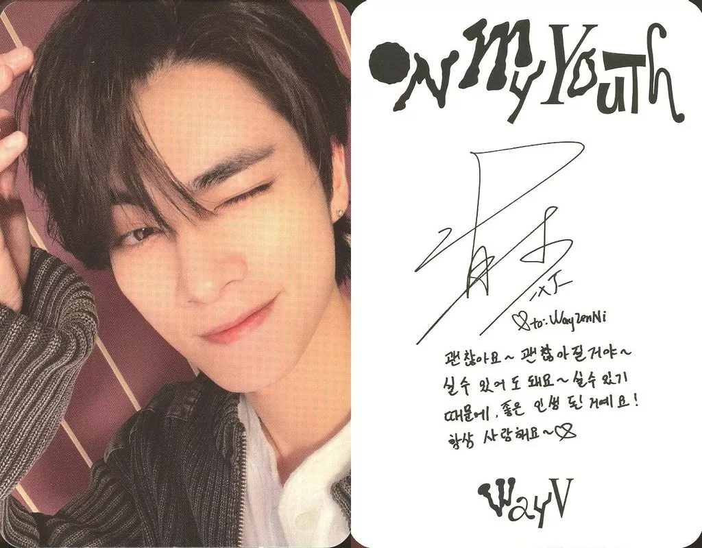 Japanese title: コレクションカード(男性)/CD「On My Youth」(Diary Ver.)フォトカード WayV/シャオジュン(XIAOJUN)/裏面白・印刷サイン、メッセージ入り/CD「On My Youth」(Diary Ver.)フォトカード