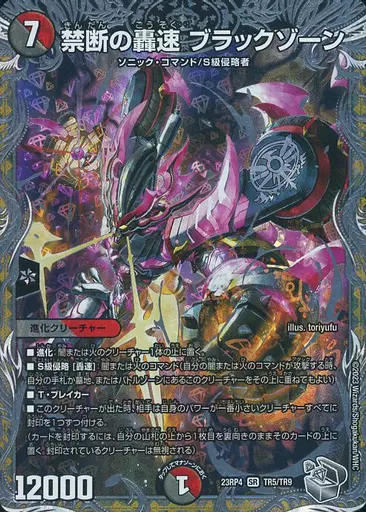 Japanese title: デュエルマスターズ/SR/多色/[DM23-RP4]アビス・レボリューション 第4弾「竜皇神爆輝」 TR5/TR9[SR]:禁断の轟速 ブラックゾーン