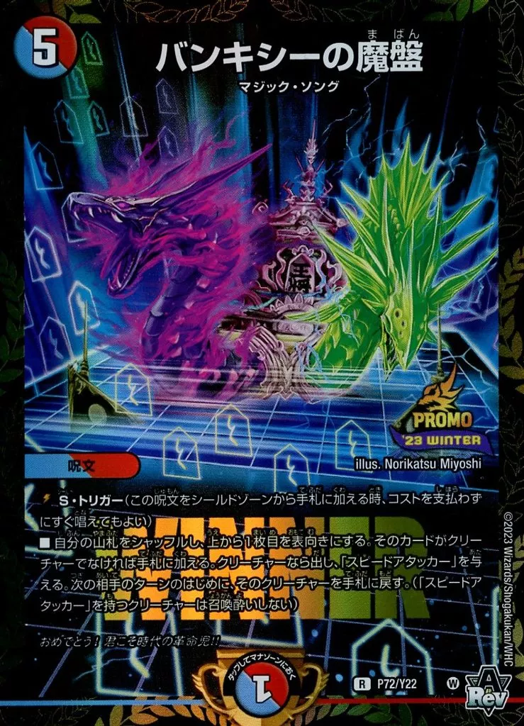 Japanese title: デュエルマスターズ/R/多色/公認イベント「ガチデュエバトル」優勝者賞及びジャンケン大会優勝者賞 P72/Y22[R]:バンキシーの魔盤