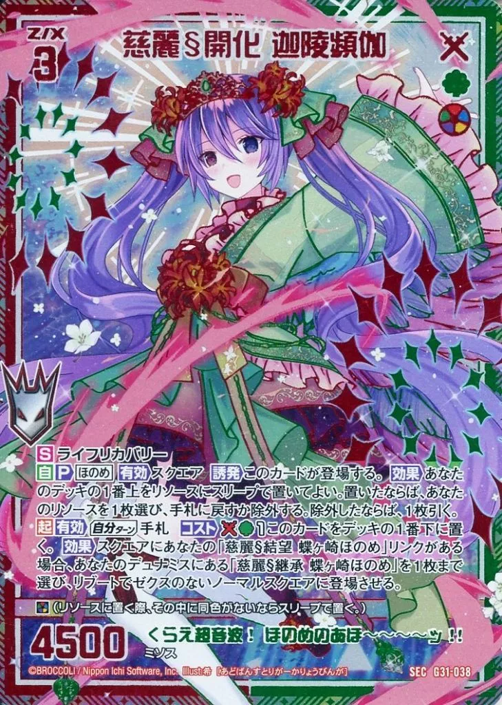 Japanese title: ゼクス/SEC/ゼクス/カードガチャ「キャラクターデッキ 蝶ヶ崎ほのめ」 G31-038[SEC]:慈麗§開化 迦陵頻伽