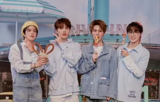 Japanese title: コレクションカード(男性)/「TREASURE WORLD」メモ ノートパッド封入フォトカード TREASURE/集合(4人)/横型/「TREASURE WORLD」メモ ノートパッド封入フォトカード