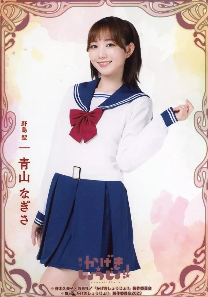 Japanese title: 生写真(女性)/声優 青山なぎさ(野島聖)/膝上・キャラクターショット/舞台「かげきしょうじょ!!」個別ブロマイドB