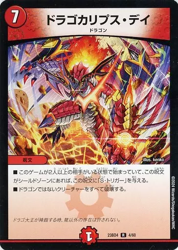 Japanese title: デュエルマスターズ/R/火/[DM23-BD4]エキサイティング・デュエパ・デッキ 「ドラドラドラゴン龍幻郷」 4/60[R]:ドラゴカリプス・デイ