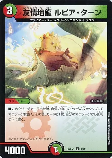 Japanese title: デュエルマスターズ/U/自然/[DM23-BD4]エキサイティング・デュエパ・デッキ 「ドラドラドラゴン龍幻郷」 8/60[U]:友情地龍 ルピア・ターン