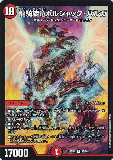 Japanese title: デュエルマスターズ/R/火/[DM23-BD4]エキサイティング・デュエパ・デッキ 「ドラドラドラゴン龍幻郷」 23/60[R]:龍騎旋竜ボルシャック・バルガ