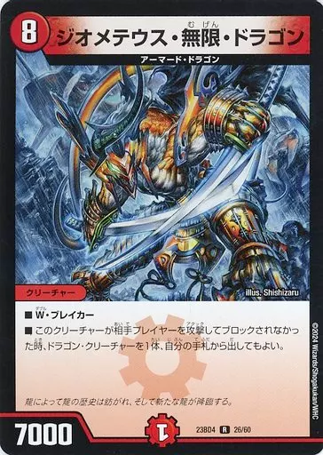 Japanese title: デュエルマスターズ/R/火/[DM23-BD4]エキサイティング・デュエパ・デッキ 「ドラドラドラゴン龍幻郷」 26/60[R]:ジオメテウス・無限・ドラゴン