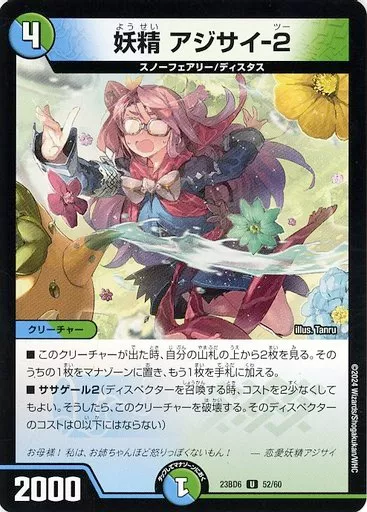Japanese title: デュエルマスターズ/U/多色/[DM23-BD6]エキサイティング・デュエパ・デッキ 「双極のアカシックZ計画」 52/60[U]:妖精 アジサイ-2