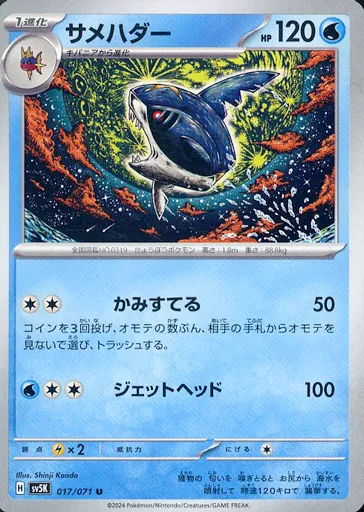 Japanese title: ポケモンカードゲーム/U/水/スカーレット&バイオレット 拡張パック ワイルドフォース 017/071[U]:サメハダー