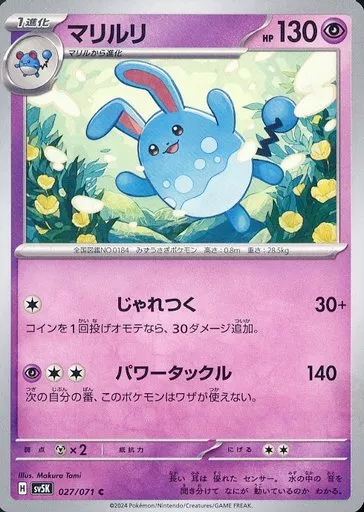 Japanese title: ポケモンカードゲーム/C/超/スカーレット&バイオレット 拡張パック ワイルドフォース 027/071[C]:マリルリ